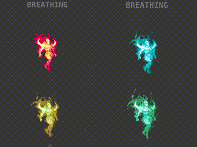 - Fireelemetal _{color}.plist – frame data for each animation (TexturePacker / Cocos2D format)