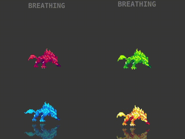 - Glitchwolf _{color}.png - complete spritesheet with all animation frames